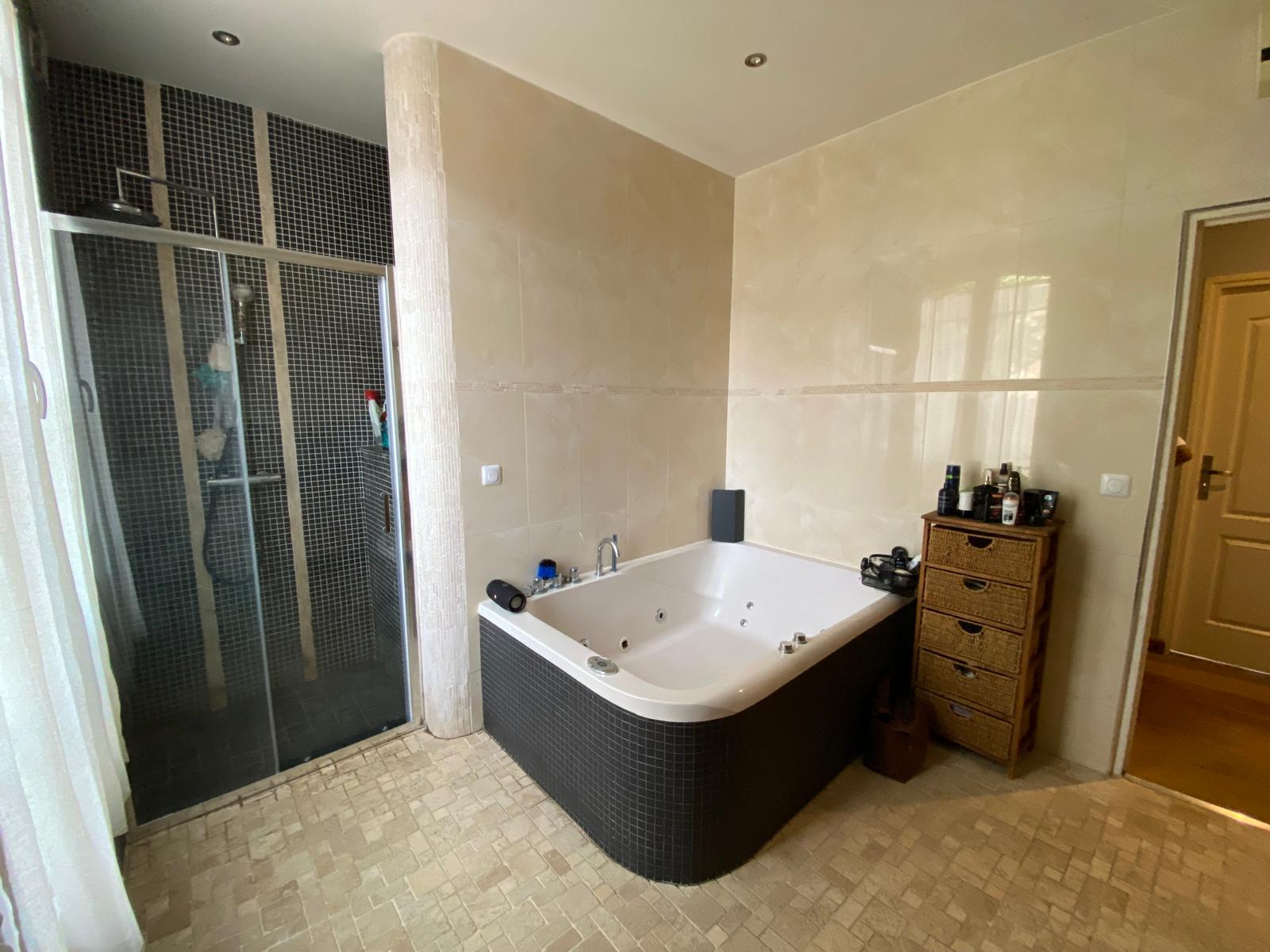 au premier deux chambres et une belle salle de bains.