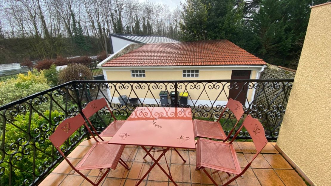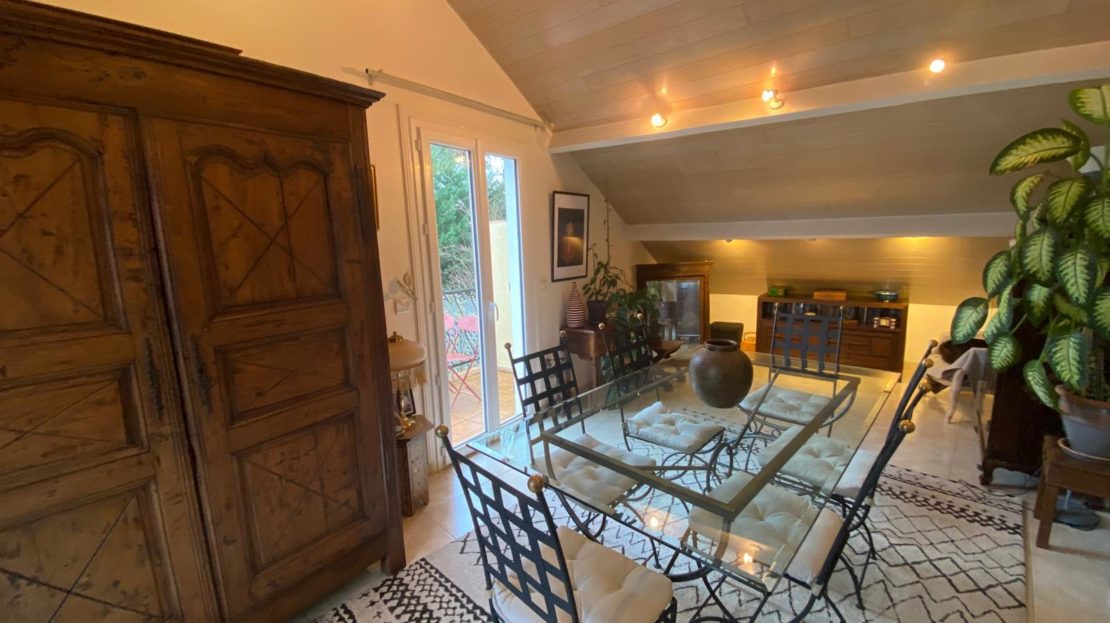 avec cheminée, une salle à manger ouvrant sur un petit balcon,