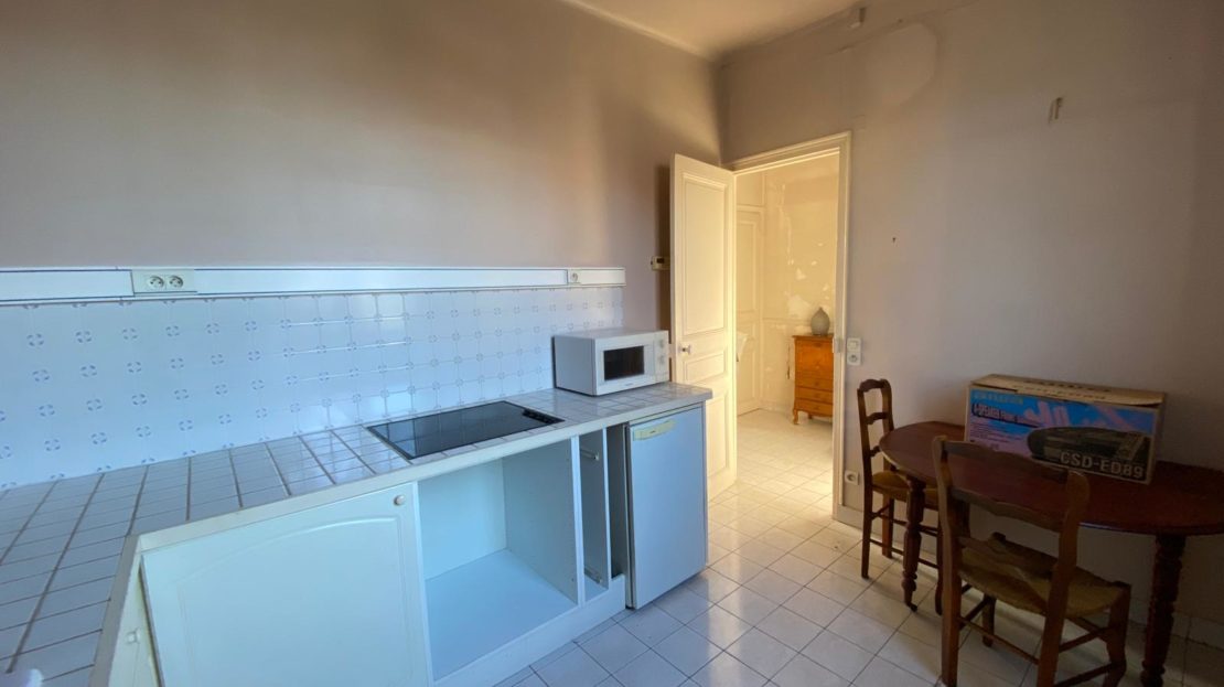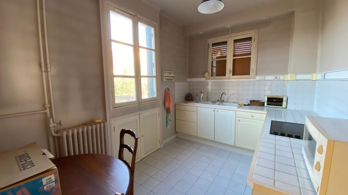 L’ensemble séjour + cuisine peut facilement devenir une pièce traversante avec cuisine ouverte,  wc indépendant.